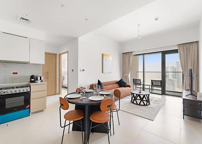 Vayk - Stylish 1Br In Iconic Downtown Location Apartment includes self-catering facilities, such as an equipped kitchen with an electric kettle, a refrigerator, and kitchenware. The accommodation is situated 2.5 km from Business Bay train station and in proximity to mon arret bus station.